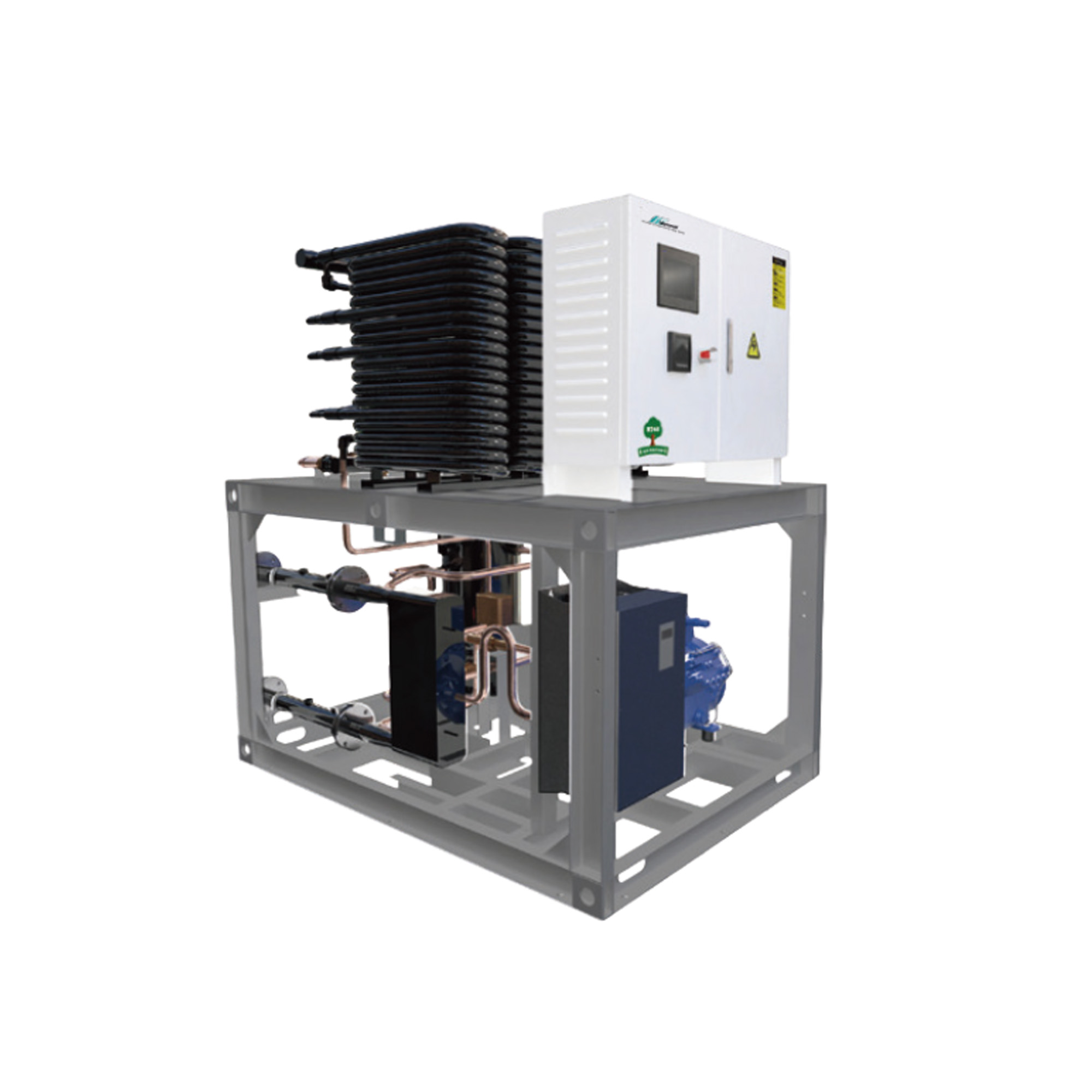 This CO₂ heat pump unit is engineered for sustainable, high-performance operation, using the natural refrigerant R744 to support green energy goals with zero ozone depletion and ultra-low global warming impact. It delivers consistently high outlet-water temperatures, handling inlet ranges from 5°C to 55°C and producing hot water up to 95°C. Designed to work reliably in harsh climates, the unit operates stably in ambient temperatures from –35°C to 45°C. Its integrated design provides both heating and cooling — producing chilled water or antifreeze fluid while simultaneously generating high-temperature hot water. With advanced technology and optimized efficiency across the full operating range, the system achieves exceptional energy performance with efficiencies reaching up to 10.0.