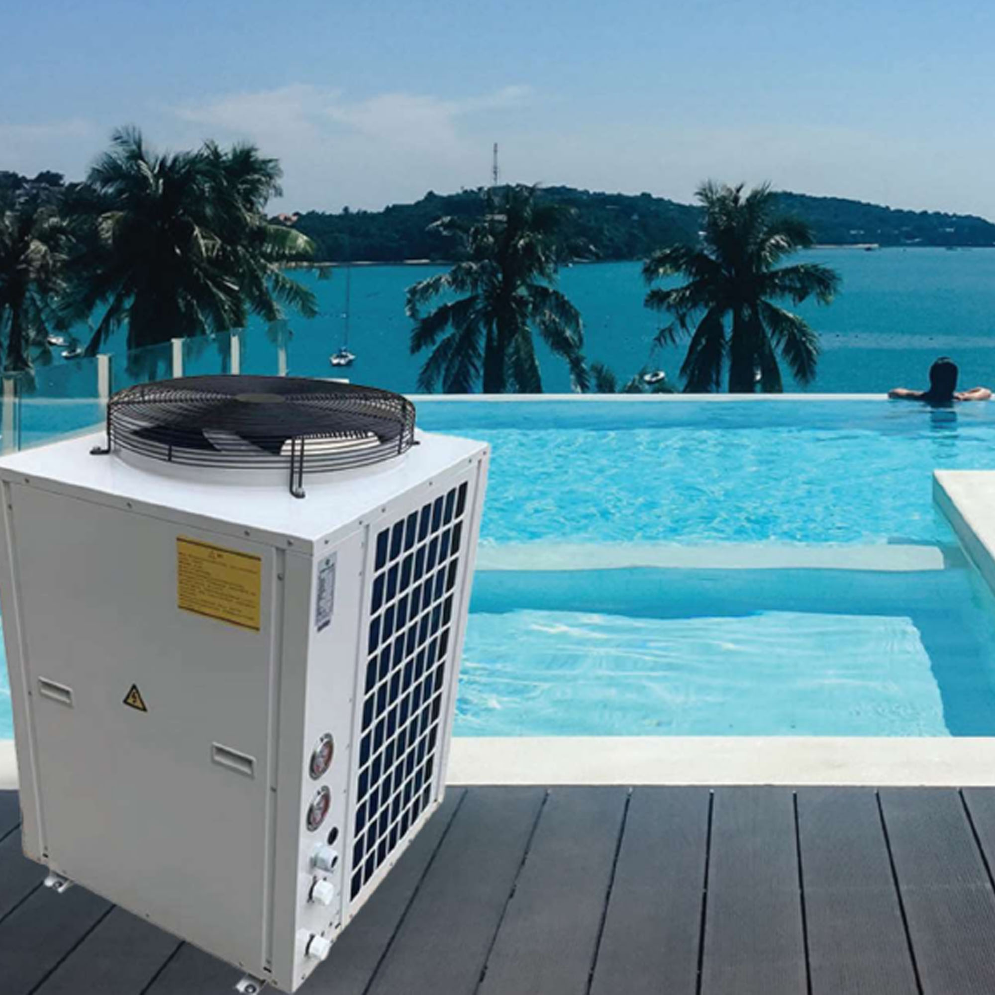 This heat pump system is engineered for reliable, efficient performance across a wide range of applications, including swimming-pool water heating. It uses an efficient scroll rotor compressor and eco-friendly R410a refrigerant, while the two-speed fan motor and precision electronic expansion valve ensure stable operation even under demanding ambient conditions. The optimized heat-exchanger cycle and hydrophilic fin-coil enhance performance at low temperatures, and the titanium tube heat exchanger offers superior corrosion resistance with easy maintenance. A durable galvanized, powder-coated housing protects the unit from environmental factors, and the LCD wire controller provides intuitive control. With modular control allowing multiple units to work together, automatic operating modes, soft-start sequencing, extensive protection functions, and built-in diagnostics, the system delivers dependable, intelligent heating performance with maximum convenience.